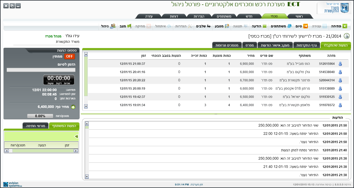 חשיפת המערכת הטכנולוגית שעמדה מאחורי הביצועים המהירים והחלקים של מכרז התדרים לדור רביעי (LTE), מכרז שנוהל במשותף ע"י משרד האוצר ומשרד התקשורת. חברת ההזנק eVision System עמדה במשימה. מאת: Telecom News