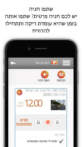 פוטנציאל גדול לאפליקציה לאייפון ולאנדרואיד להשכרת חניות פרטיות בתשלום לפי שעה של הסטארטאפ