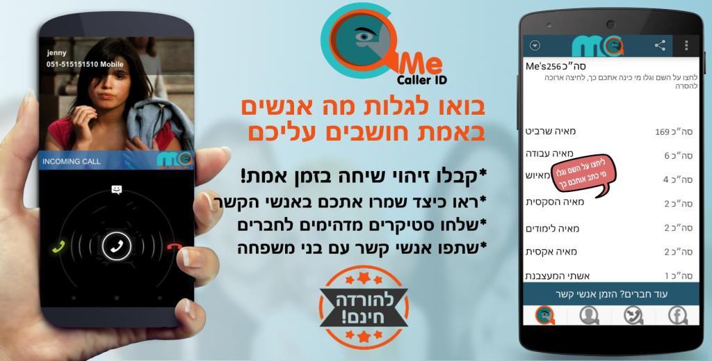בזמן אמת: Me-אפליקציה לזיהוי שיחות ושיחות ספאם ומה חושבים אנשי קשר על המשתמש. המפתחים מחפשים כיום משקיע כדי להיכנס לארצות נוספות.